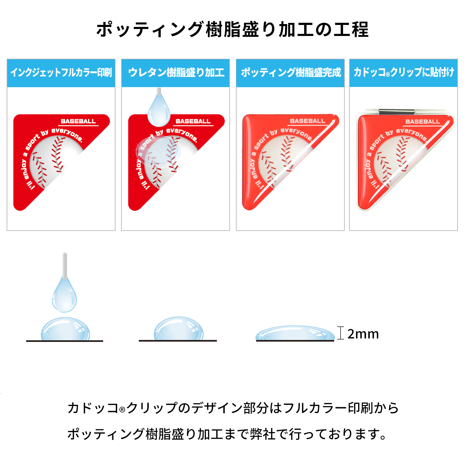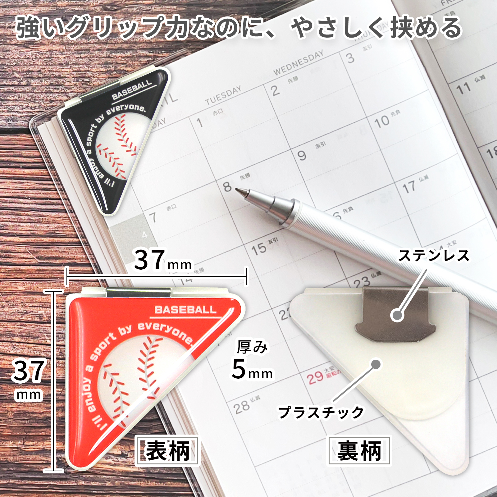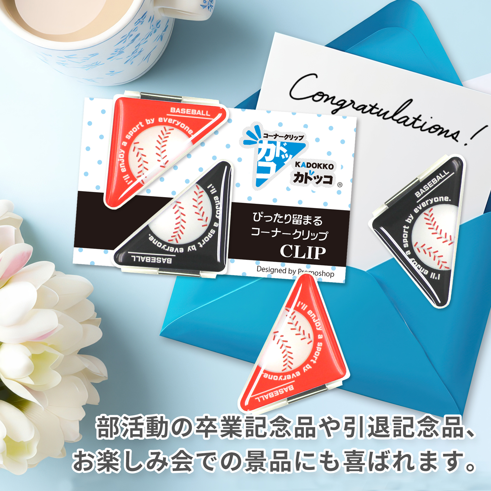 野球ボール柄のカドッコクリップ2個×2セット!! 野球関連の文房具、文具、事務用品をお探しの方におすすめ!卒業記念品や贈り物にも喜ばれております。