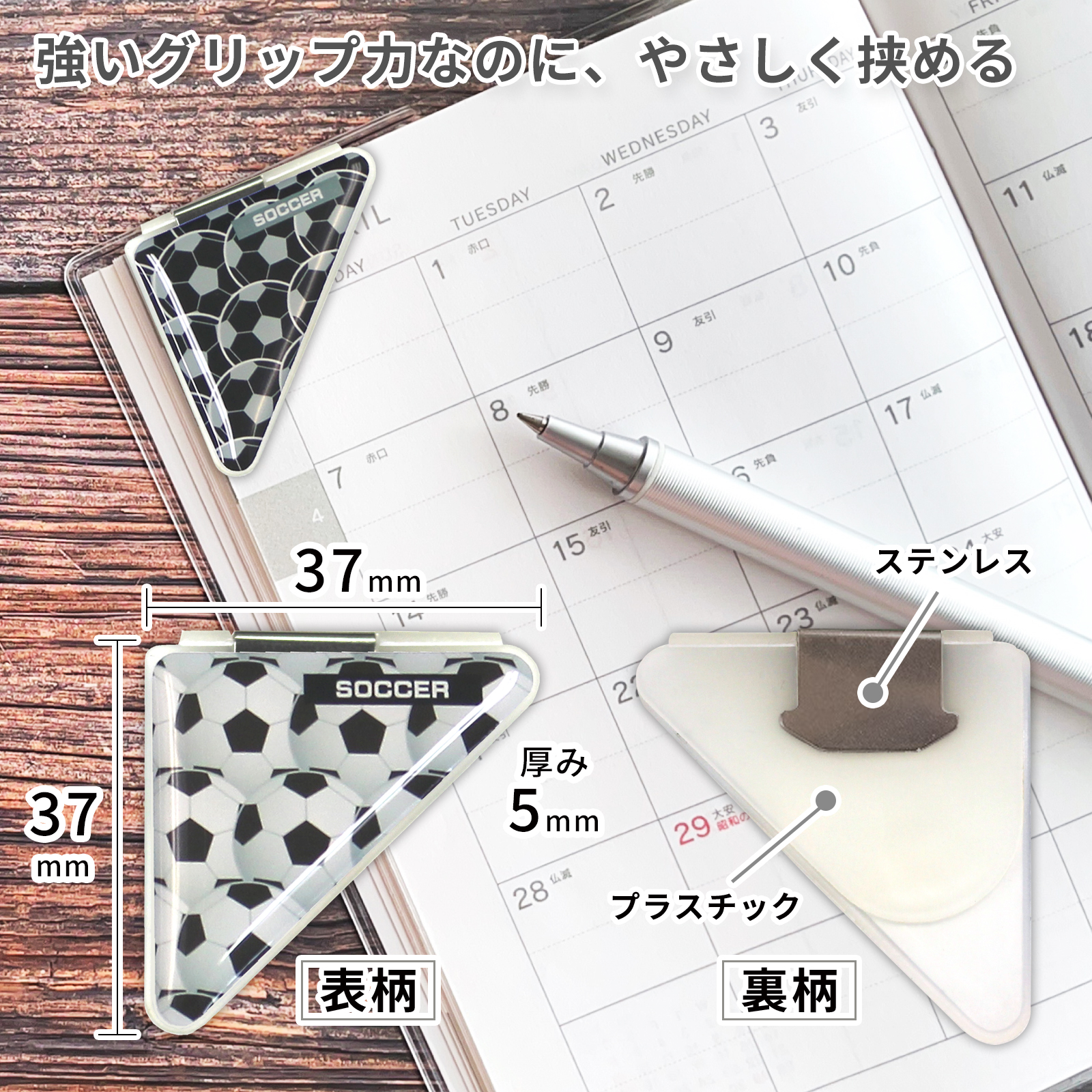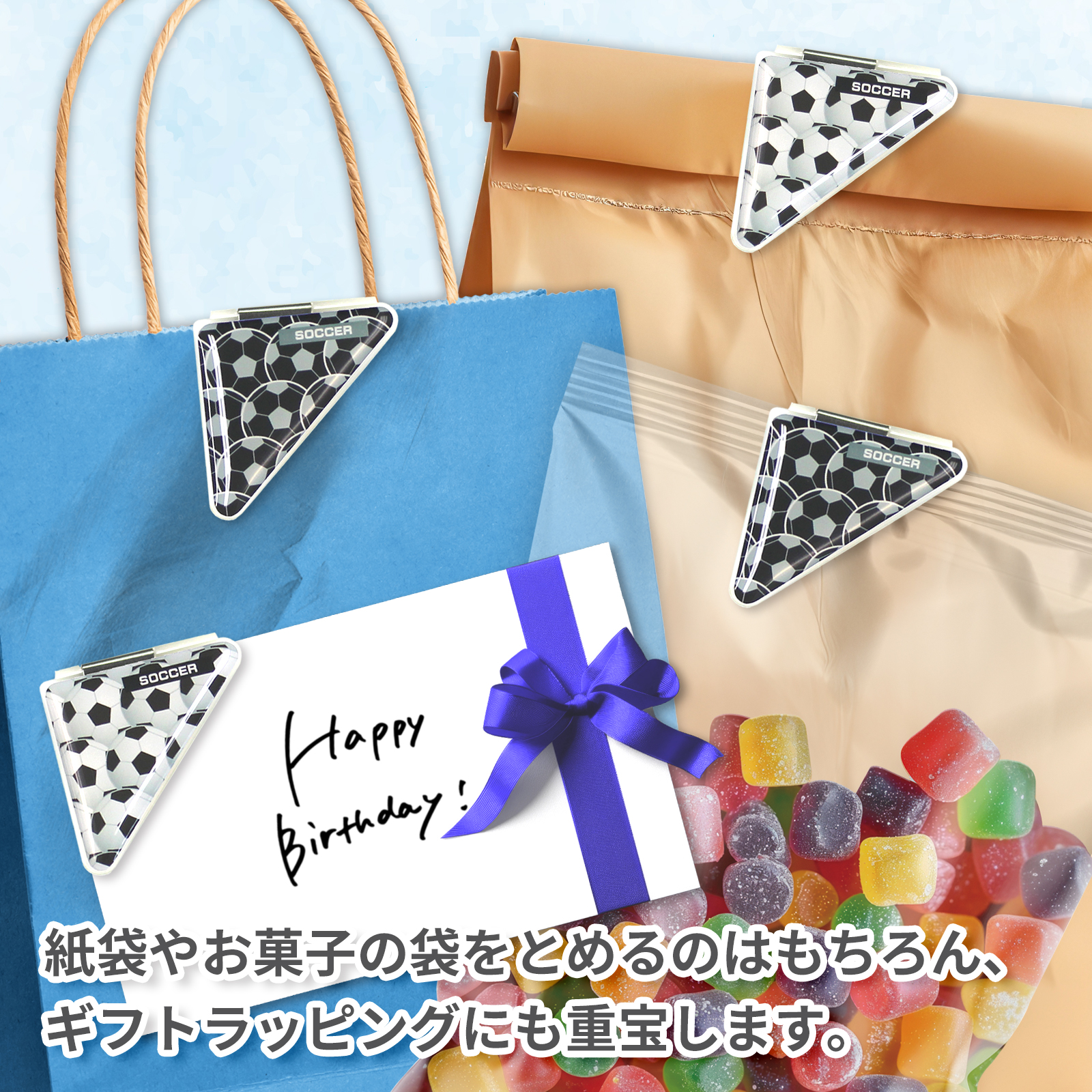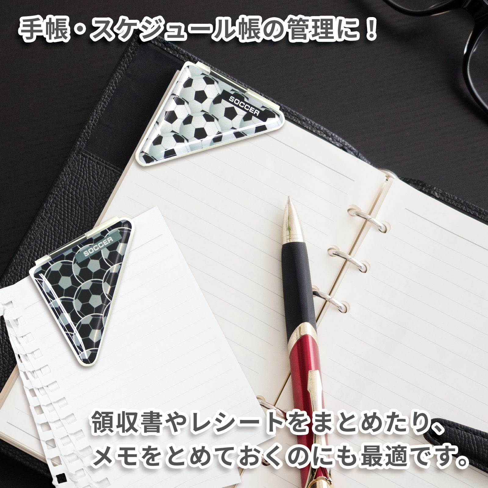 サッカーボール柄のカドッコクリップ2個×2セット!サッカー関連の文房具、文具、事務用品をお探しの方におすすめ!卒業記念品や贈り物にも喜ばれております。