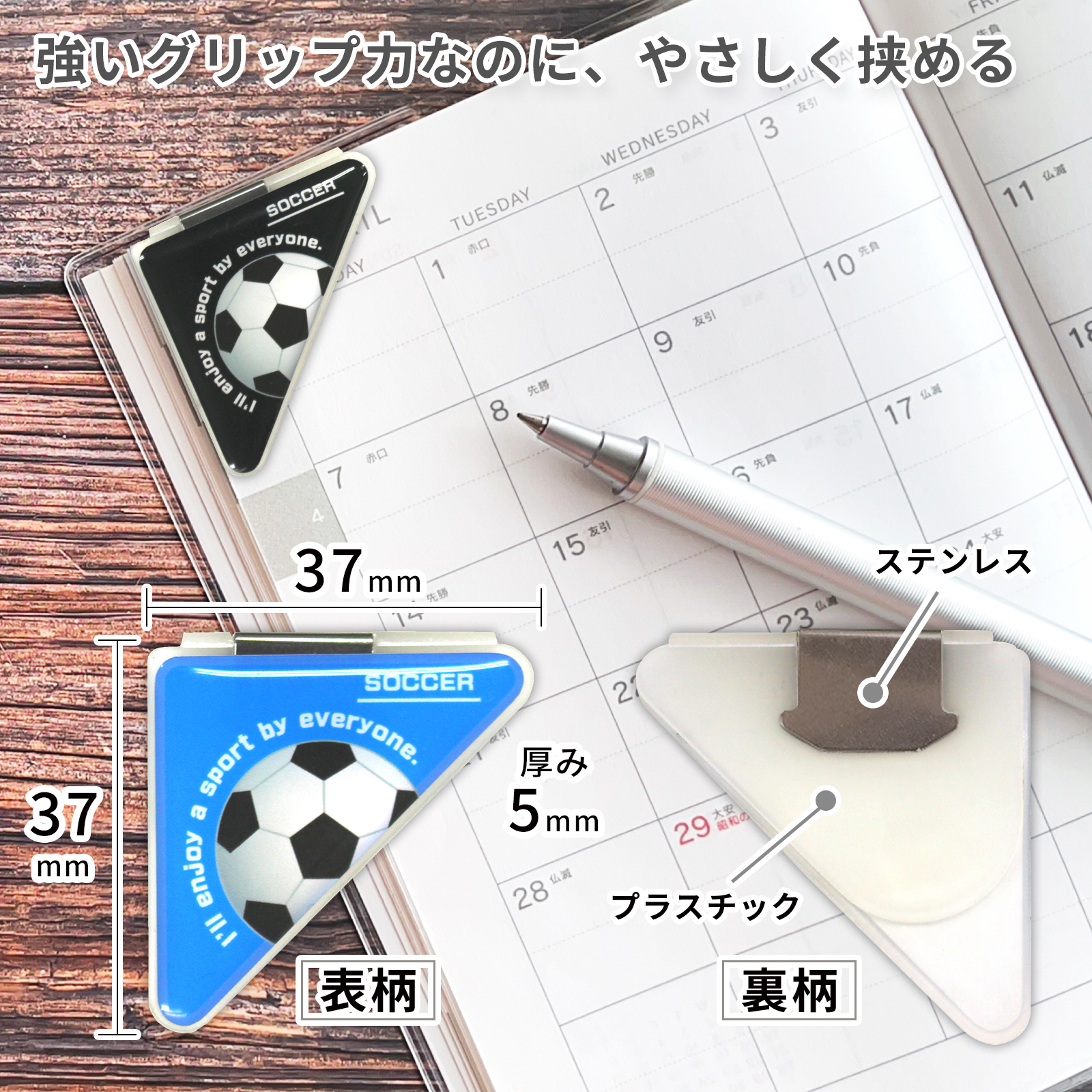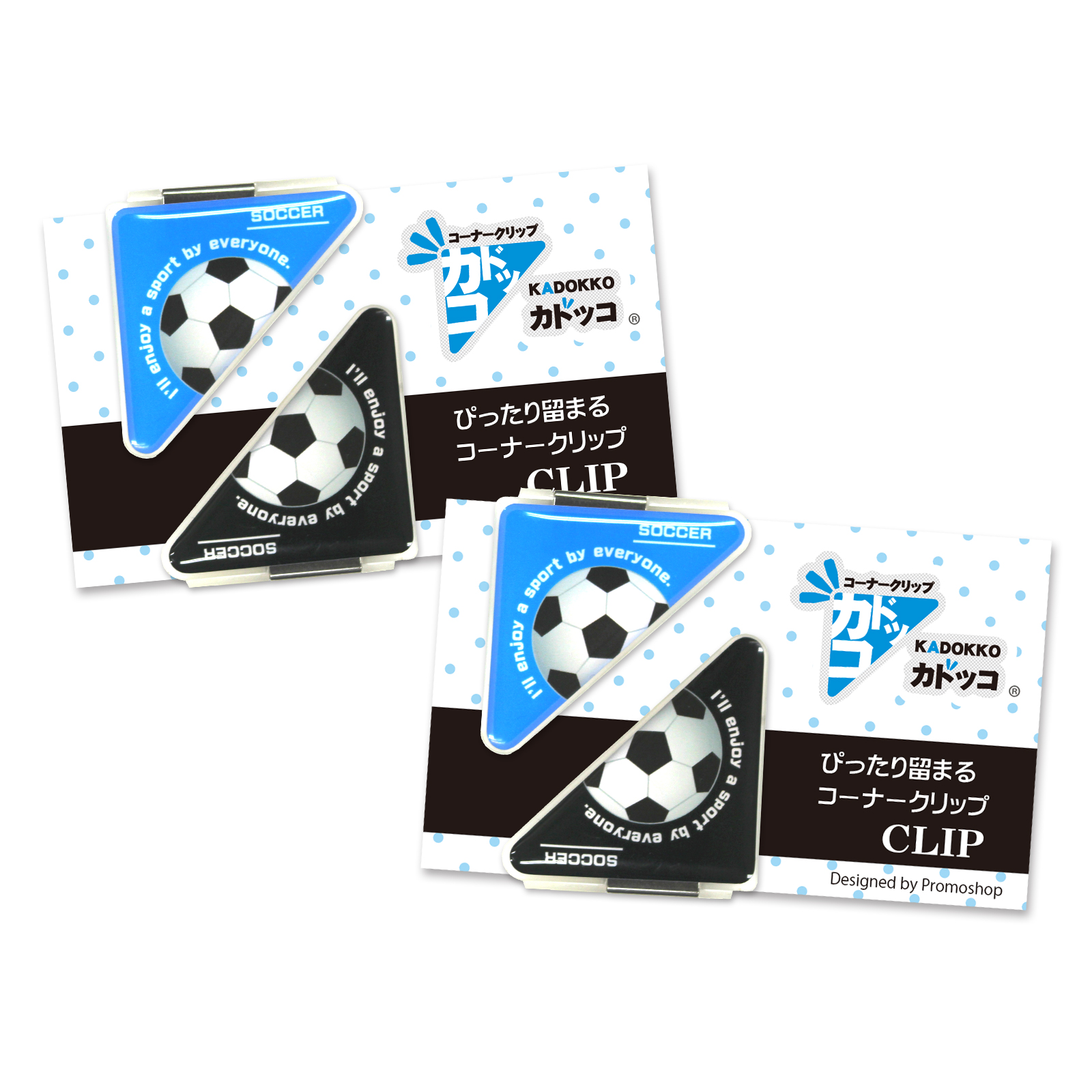 サッカーボール柄(大)のカドッコクリップ2個×2セット!サッカー関連の文房具、文具、事務用品をお探しの方におすすめ!卒業記念品や贈り物にも喜ばれております。