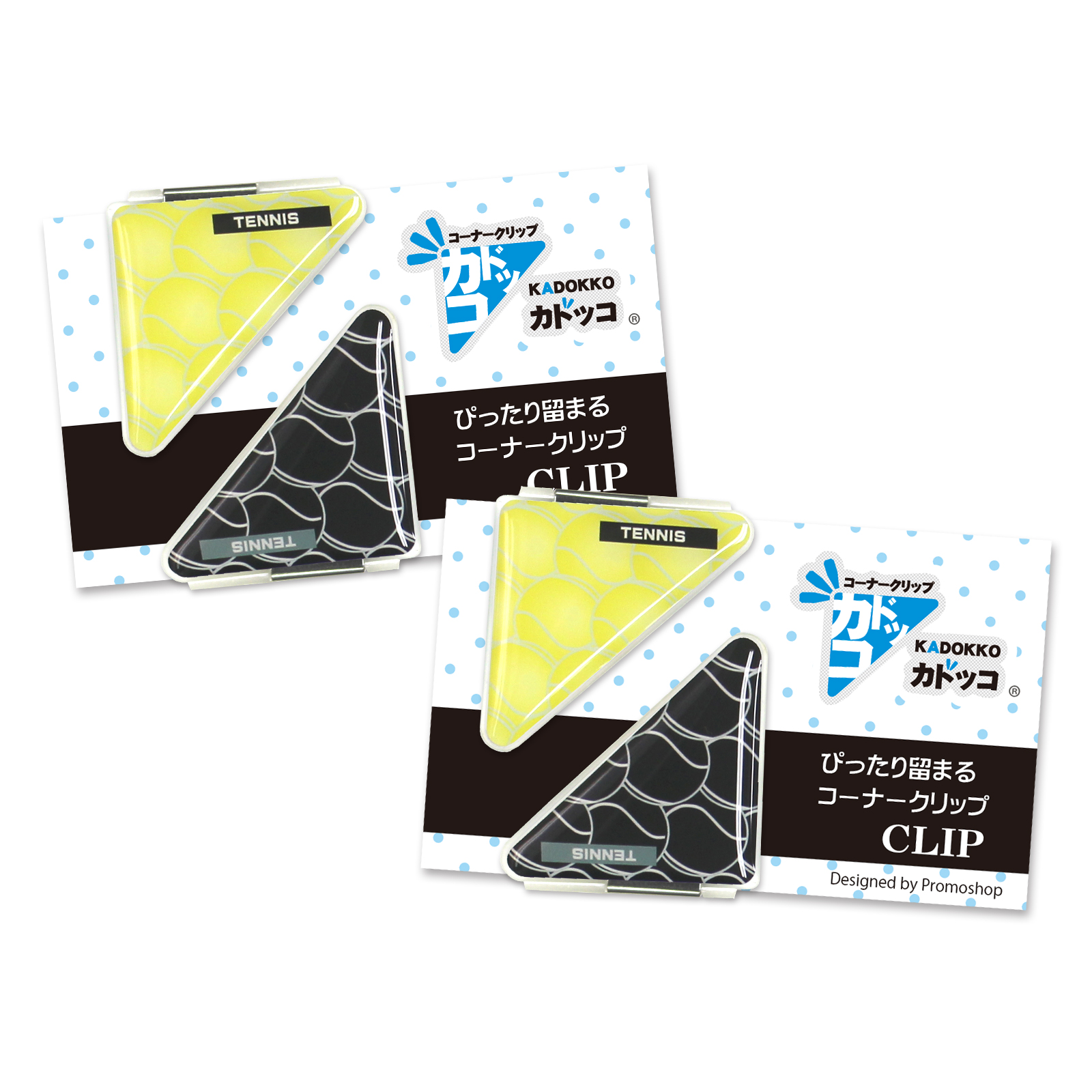 コーナークリップとしての機能を持ちながら、スタイリッシュなボール柄のデザインと、
