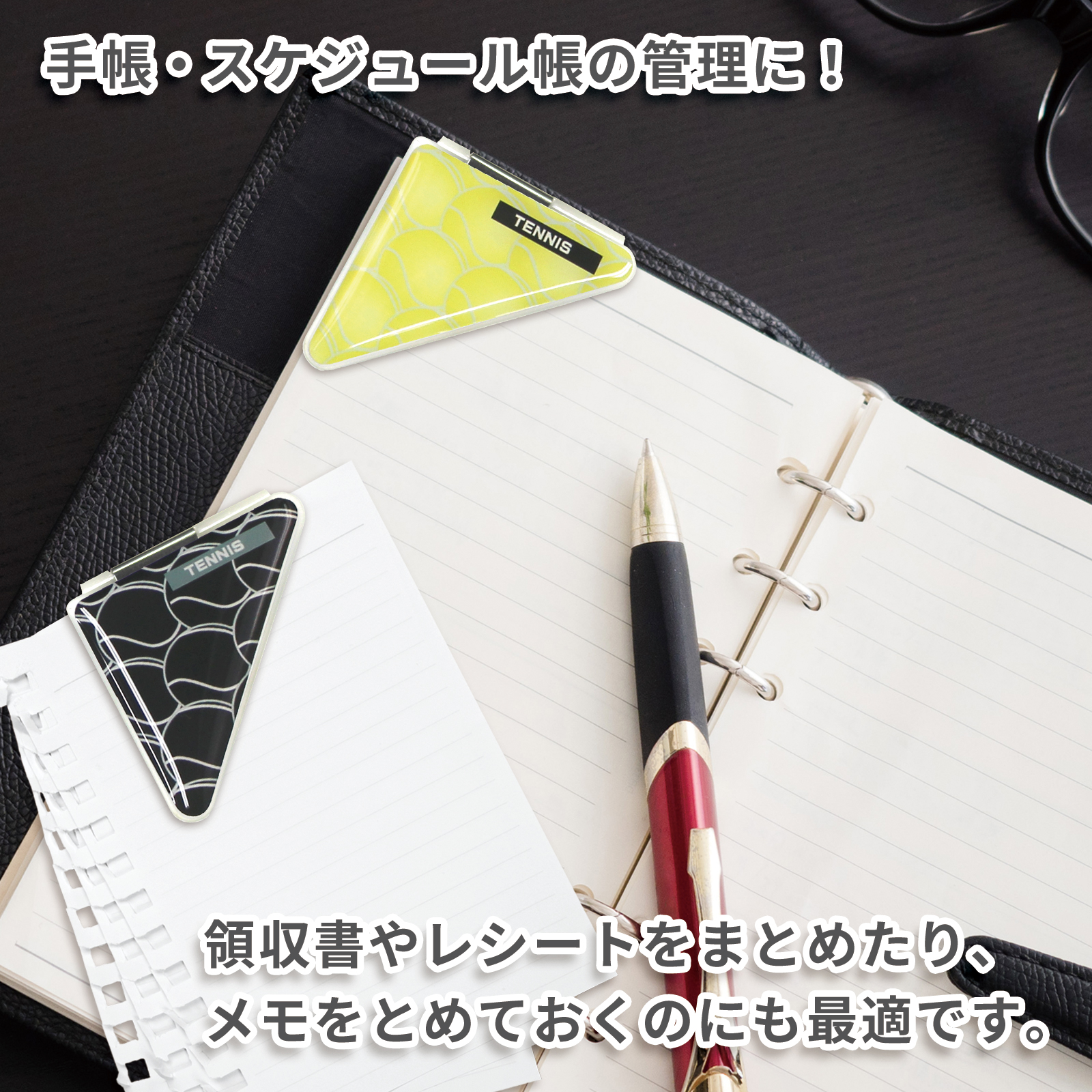 さらに形が二等辺三角形のためページめくりを邪魔しません。マチ部分が5mmあり、コピー用紙の厚さなら30枚程度挟めます。