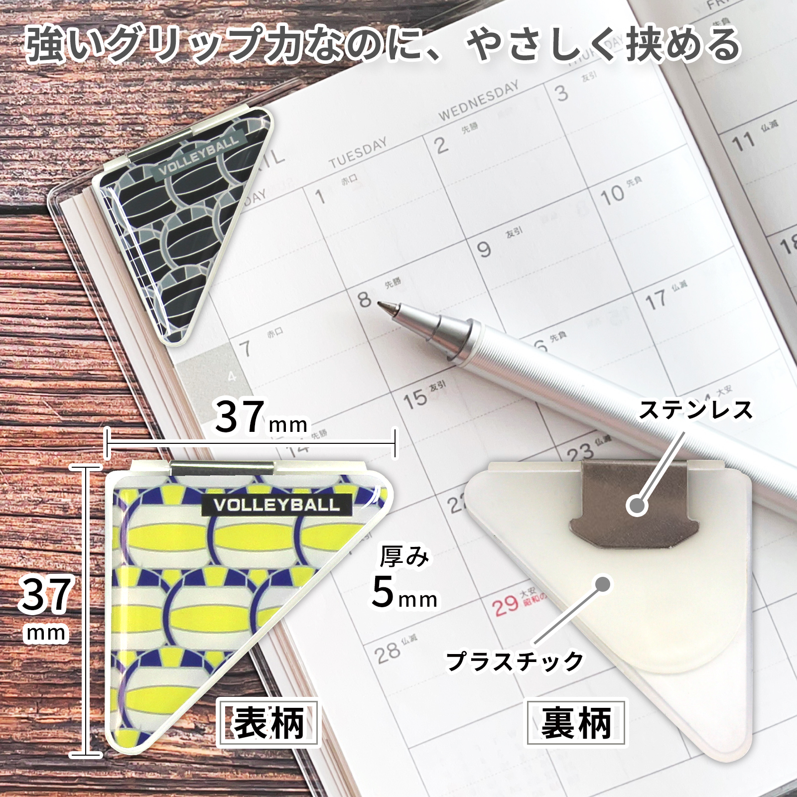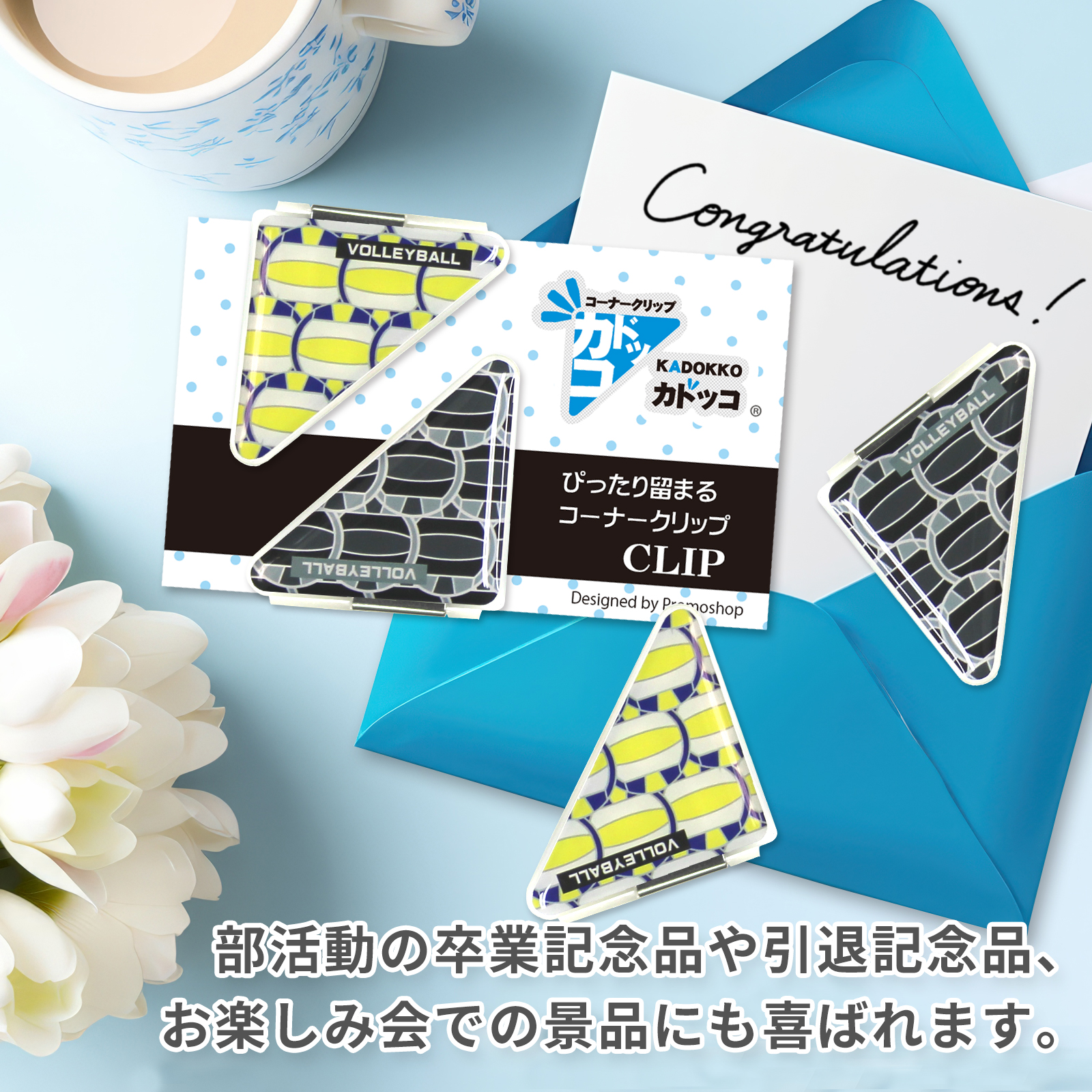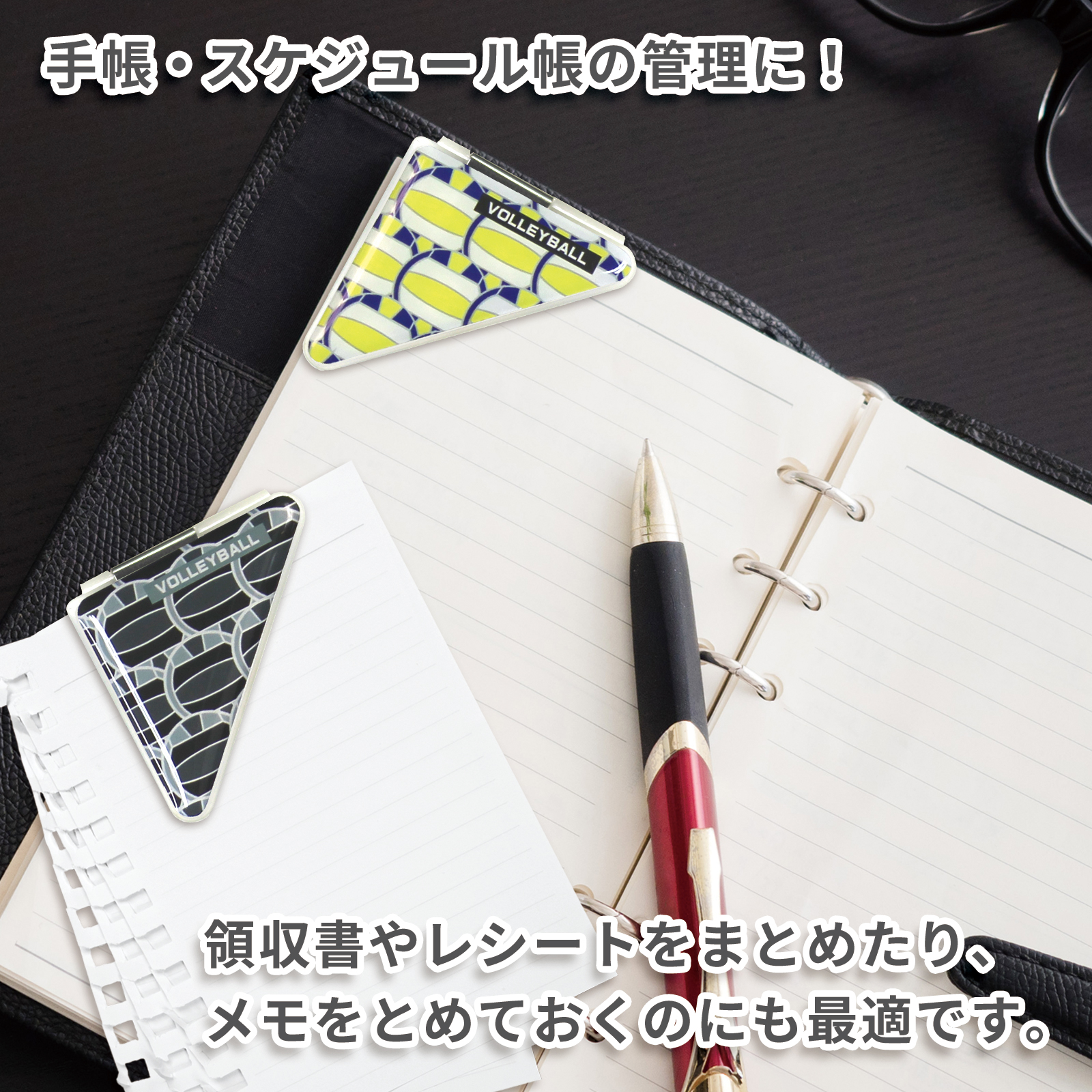バレーボール柄(小)のカドッコクリップ2個×2セット! バレーボール関連の文房具、文具、事務用品をお探しの方におすすめ!卒業記念品や贈り物にも喜ばれております。