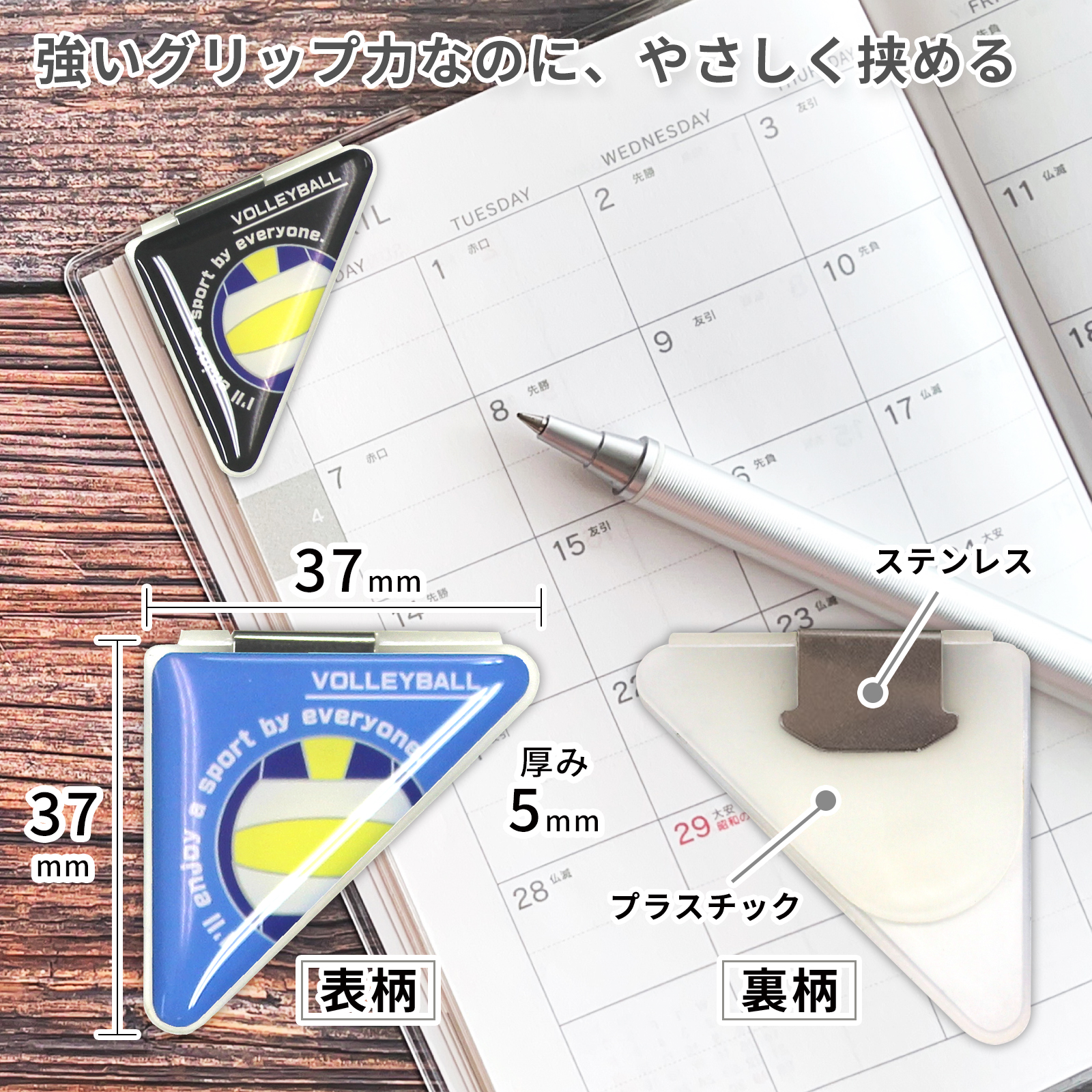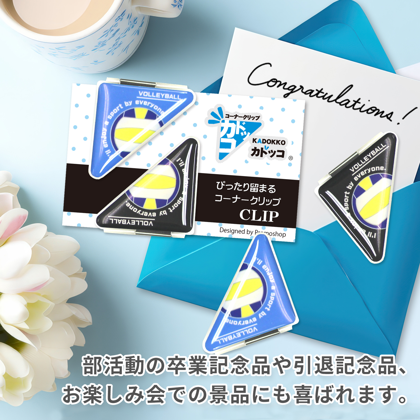 バレーボール柄(大)のカドッコクリップ2個×2セット! バレーボール関連の文房具、文具、事務用品をお探しの方におすすめ!卒業記念品や贈り物にも喜ばれております。